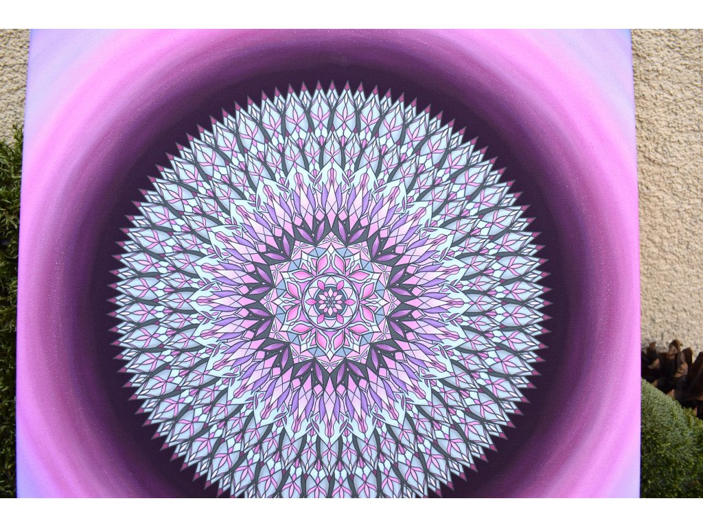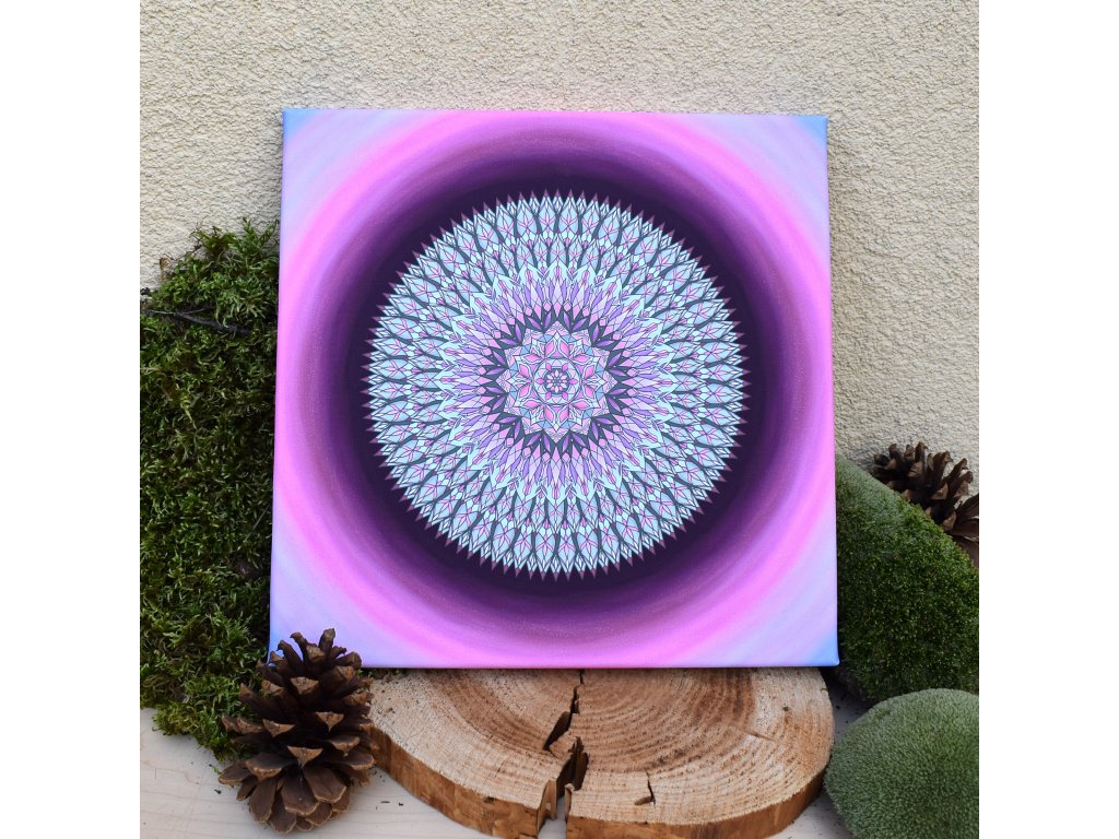 Profesionální reprodukce ručně malované mandaly CESTA LÁSKY A NADĚJE z naší dílny v nádherných fialkových odstínech vyzařuje do prostoru pozitivní vibrace, které obklopí naši duši a dopřejí jí laskavé pohlazení. Obraz o rozměru podle Vašeho přání - zvolte si variantu.