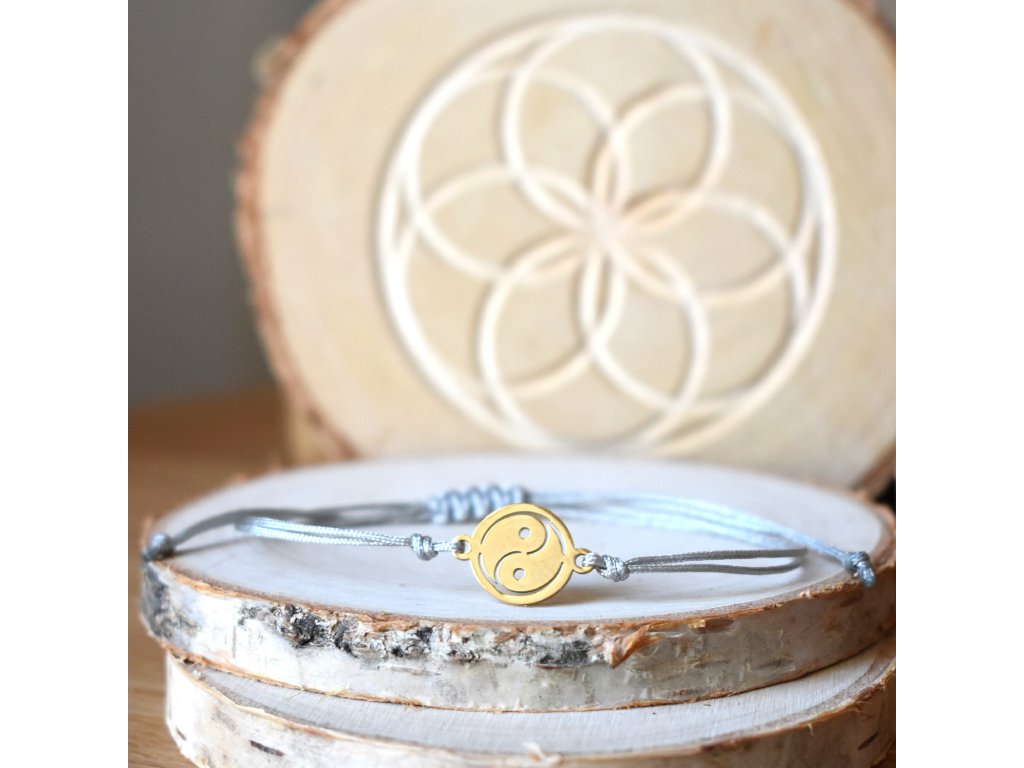 Shamballa náramek symbolem JIN A JANG z chirurgické oceli ve zlaté barvě.