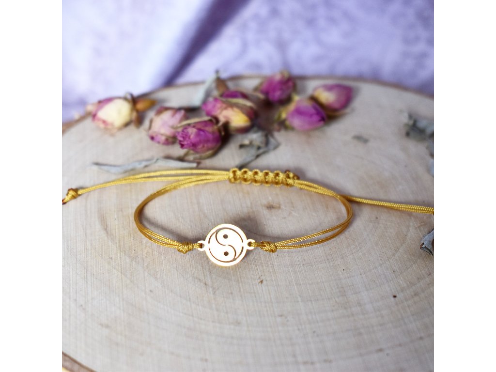Shamballa náramek JIN A JANG gold - chirurgická ocel, nylon