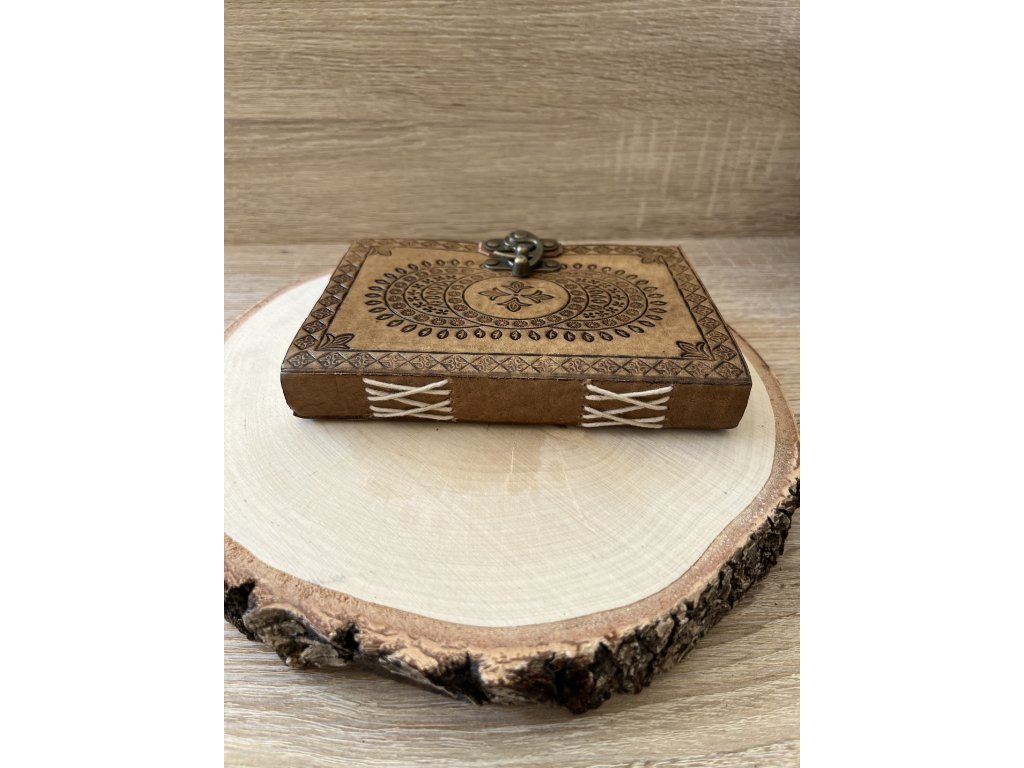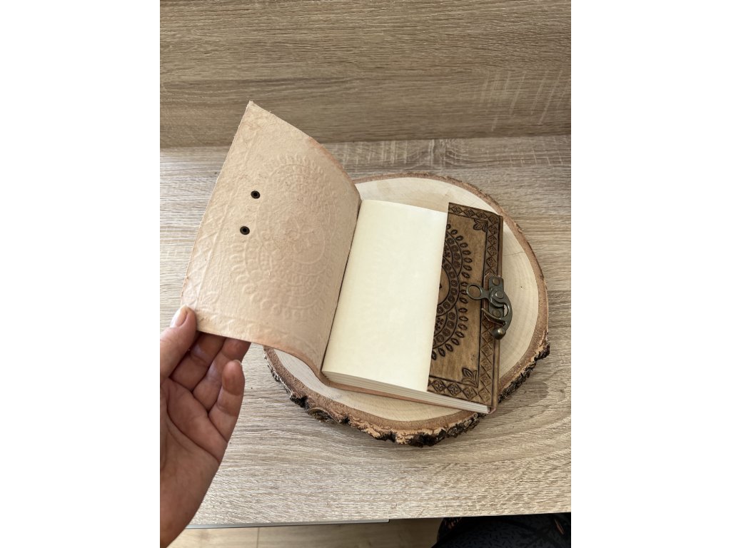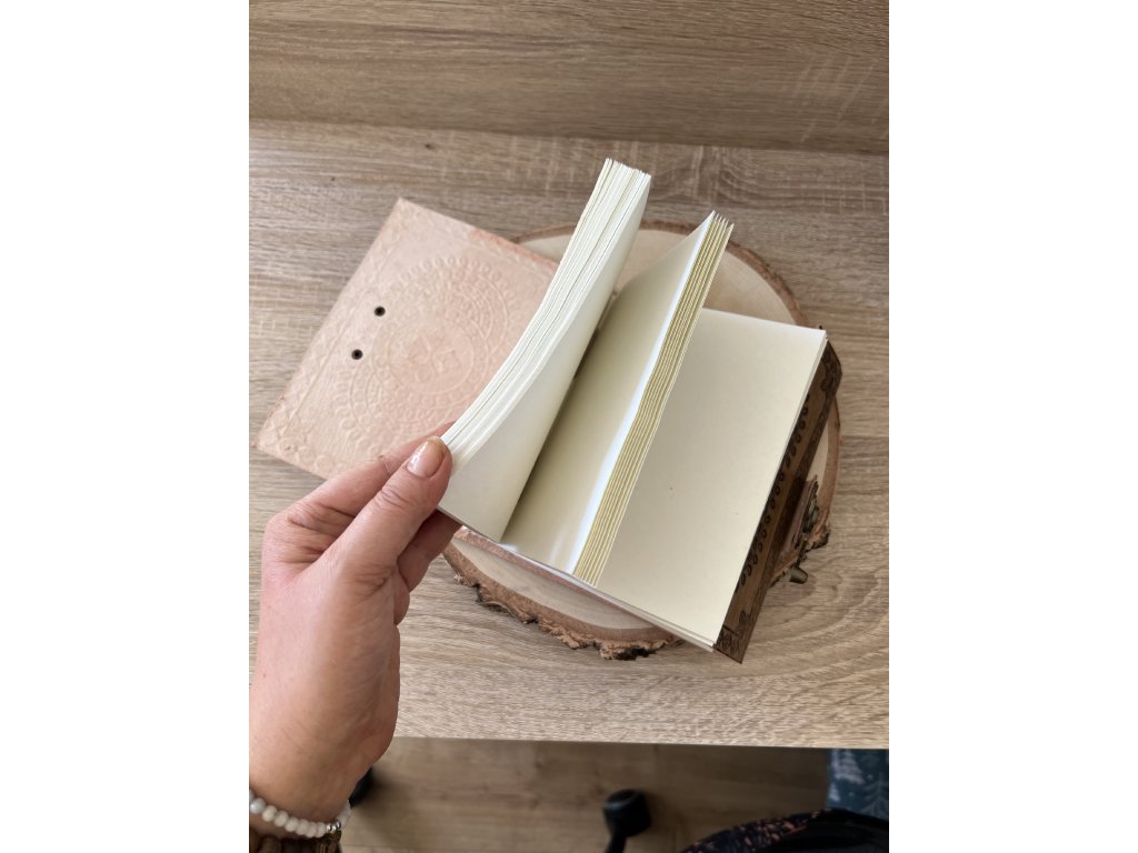 Praktický a univerzální kožený zápisník ve formátu A5, který spojuje dvě role v jednom – zápisník i skicák. Desky zdobí elegantní ruční ražba mandaly, která symbolizuje harmonii a propojení. Uvnitř najdeš nelinkované listy, ideální pro psaní, kreslení, malování i kreativní nápady.